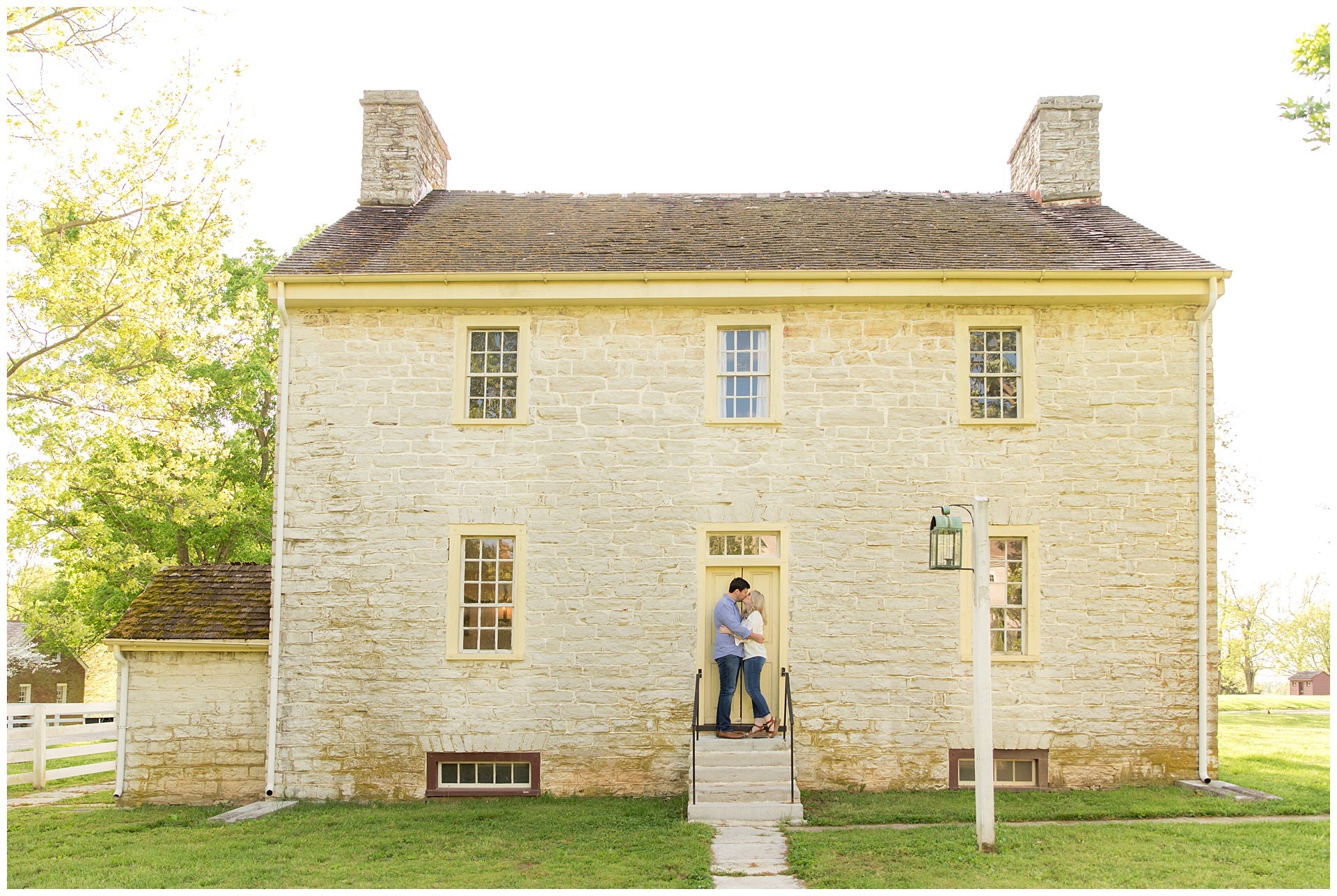 Alison and Jarrod’s engagement session was at Shaker Village in Harrodsburg, Kentucky on a beautiful spring day. The trees were full and green again after a long winter. The sunset that evening was gorgeous making their session so romantic. There were so many perfect places to take photos from country roads, white fences, old historic houses, and rolling hills. It was the perfect place to explore and celebrate their engagement. We loved getting to know Alison and Jarrod and hearing all about their love story.
